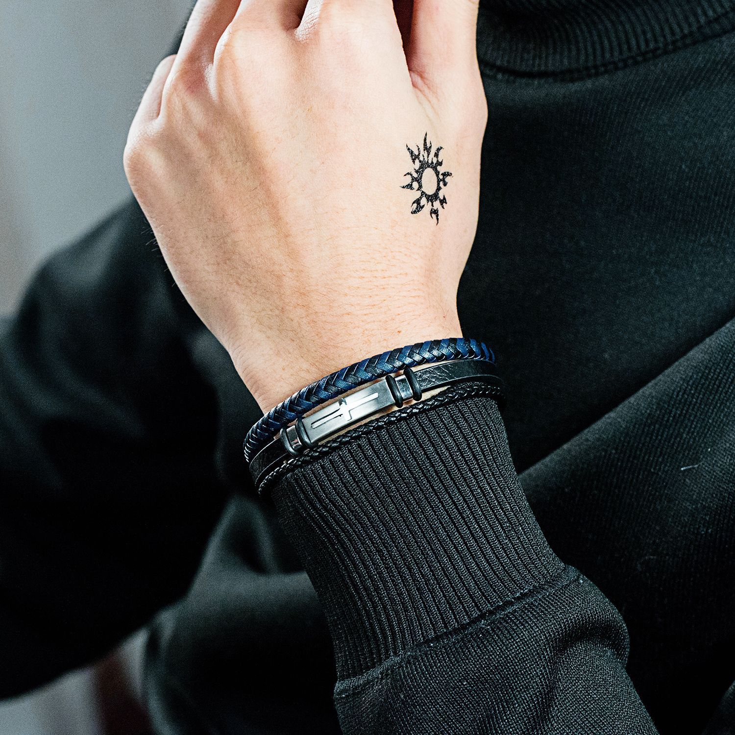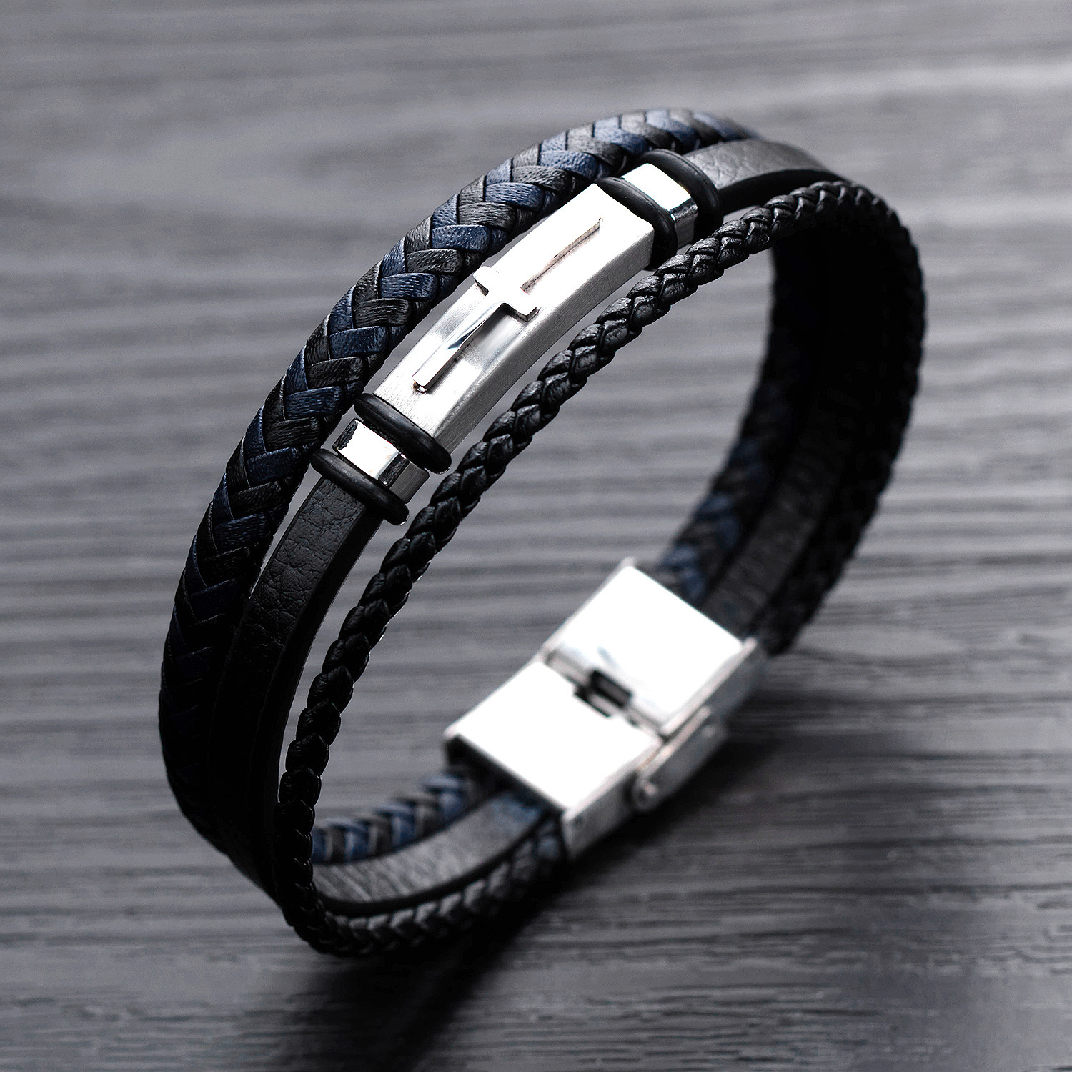 The layered design creates a rugged, masculine appeal while remaining comfortable for all-day wear. Strong, flexible, and lightweight, it wraps securely around the wrist and pairs easily with watches or other accessories.